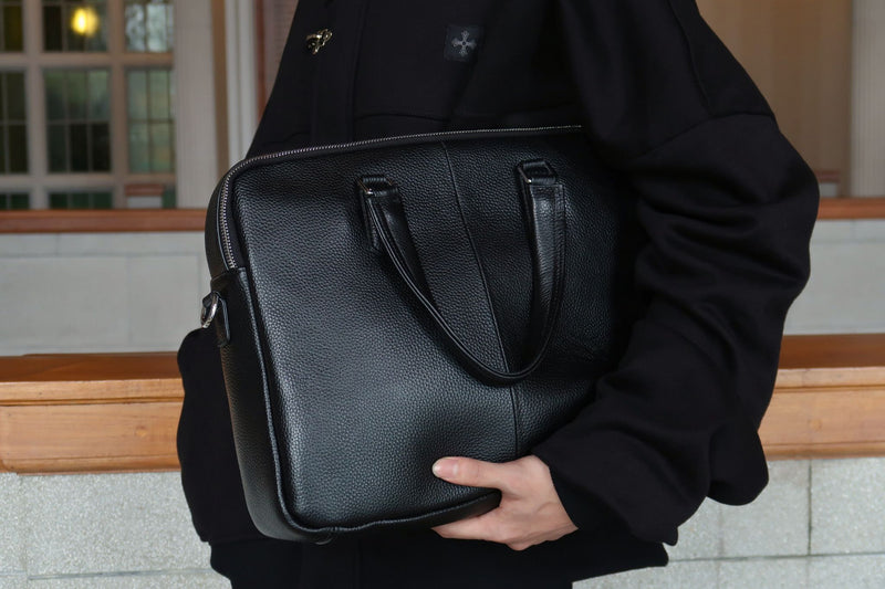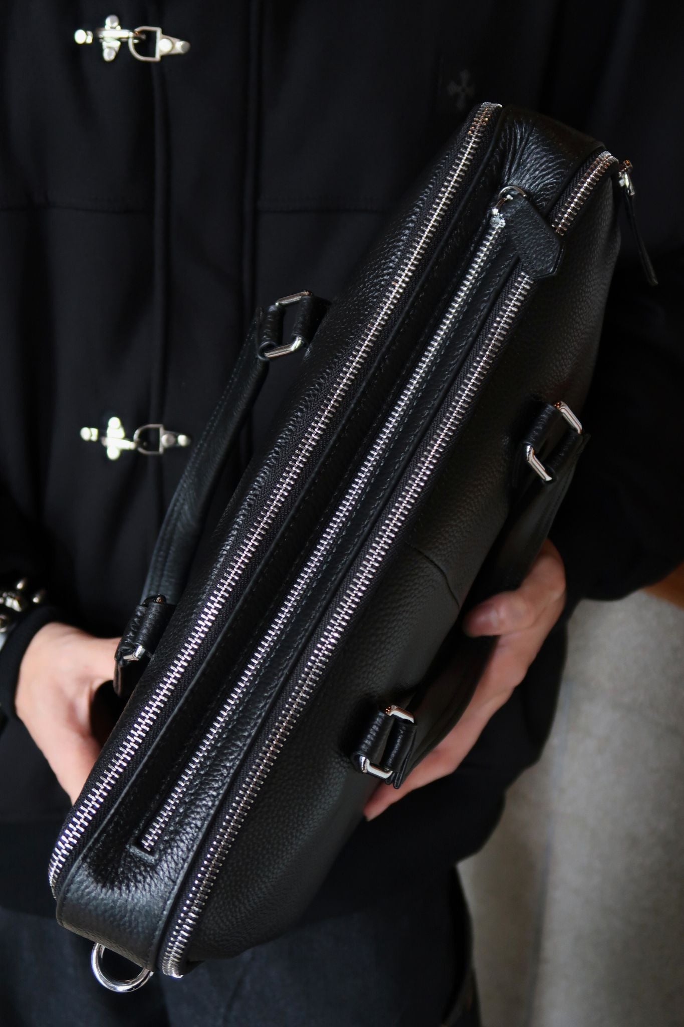 Triple zip unisex cowhide leather briefcase laptop bag with sling