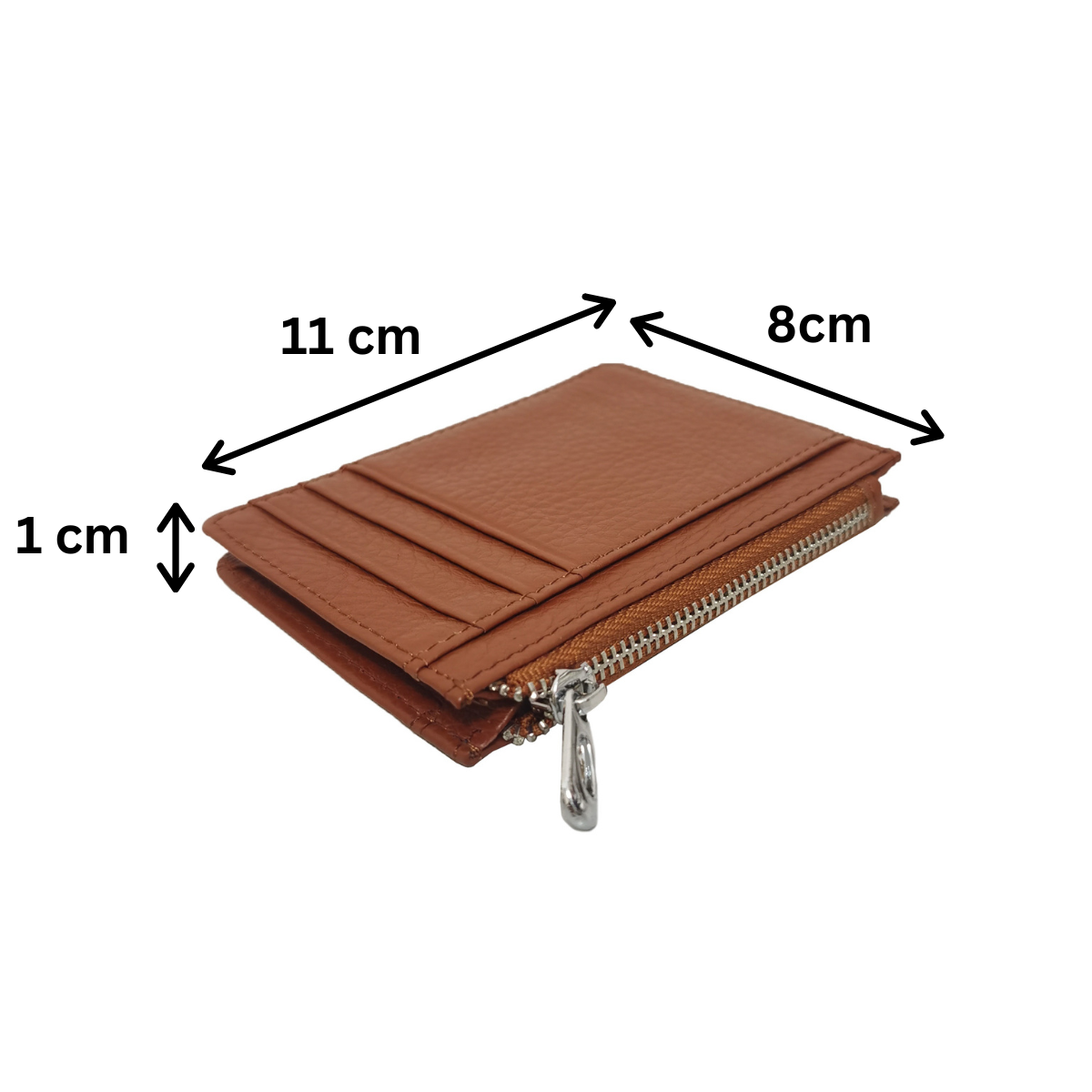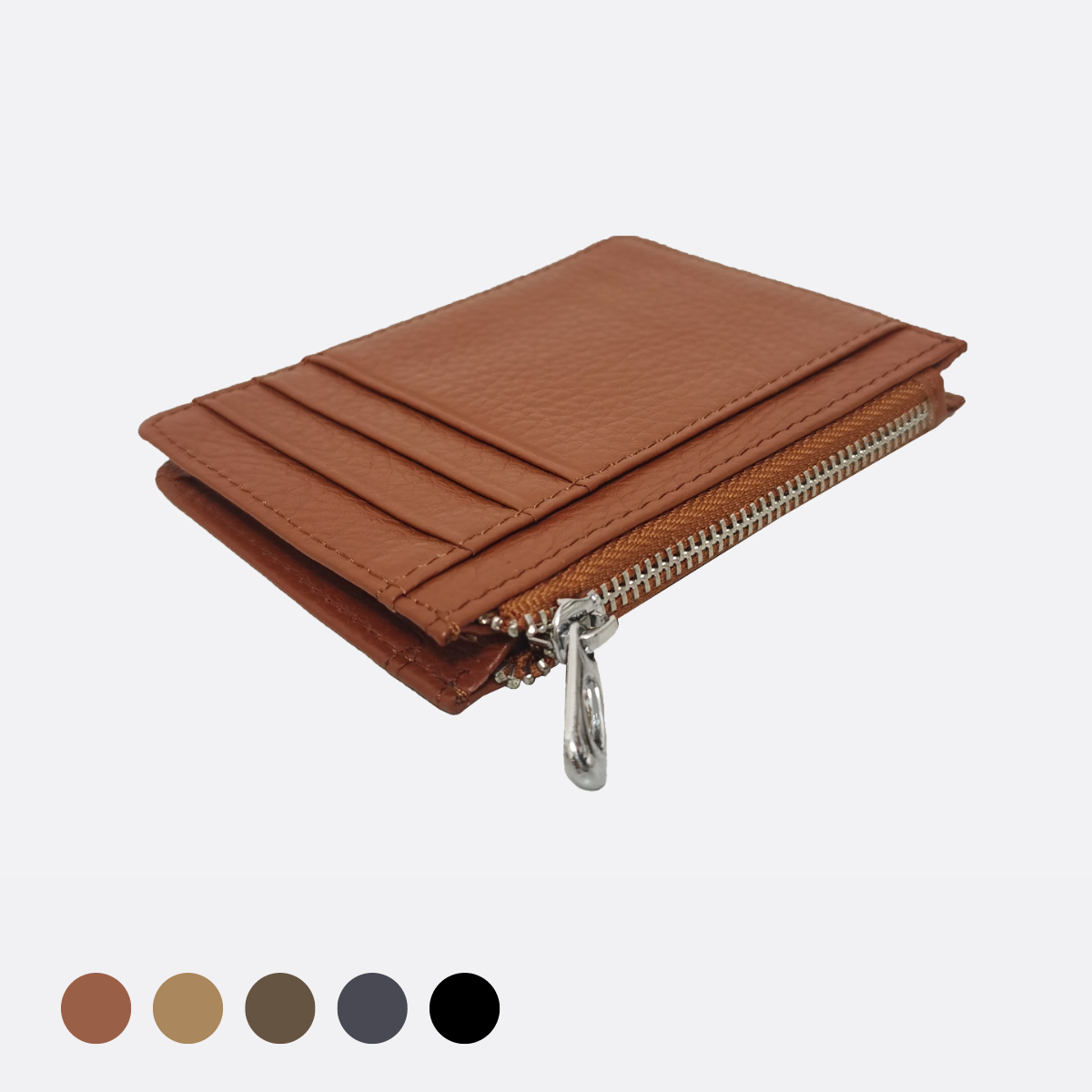 Unisex genuine cowhide leather card holder with zip