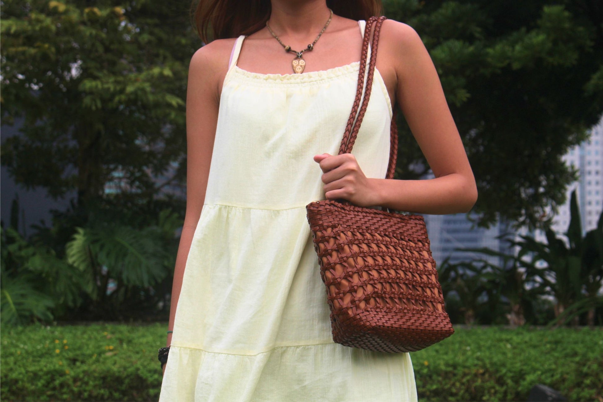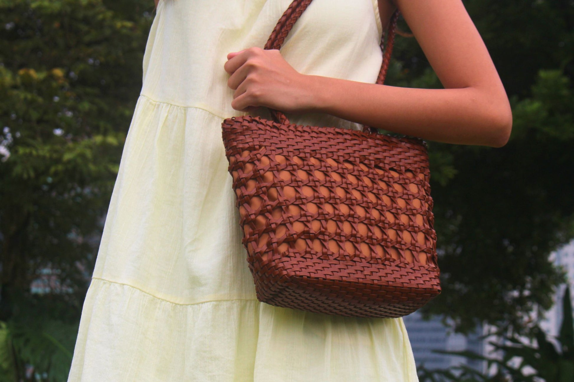 Women's genuine cowhide leather handbag handwoven Basket design