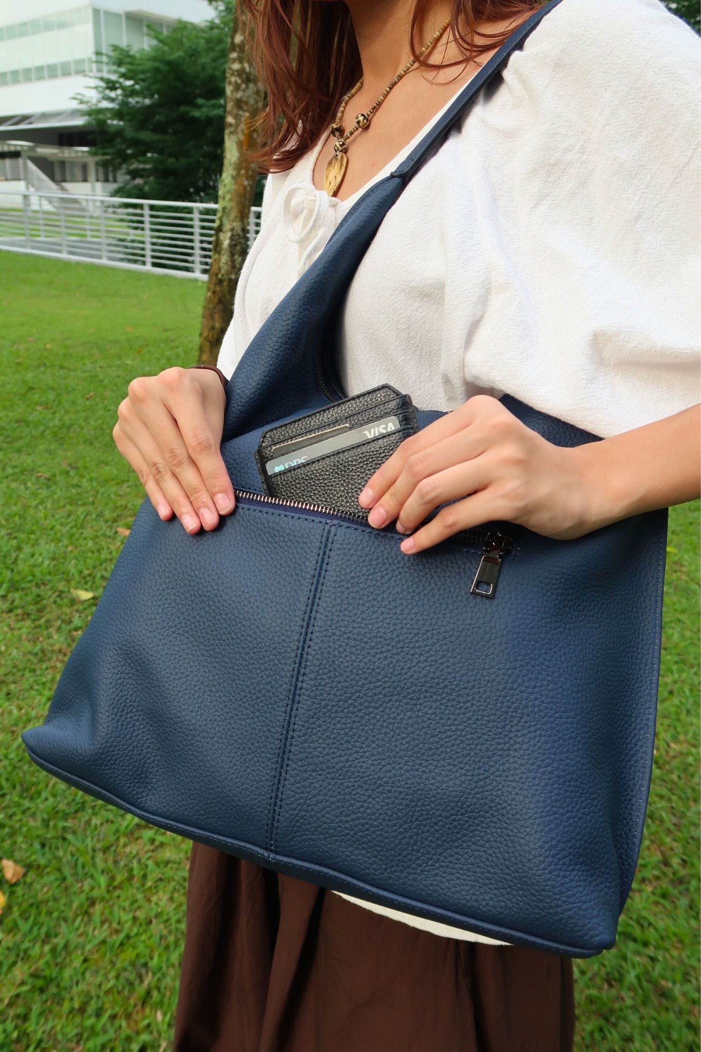 Good quality leather worth the price very spacious n roomy i really love the design it’s simple and versatile love the color 🤗