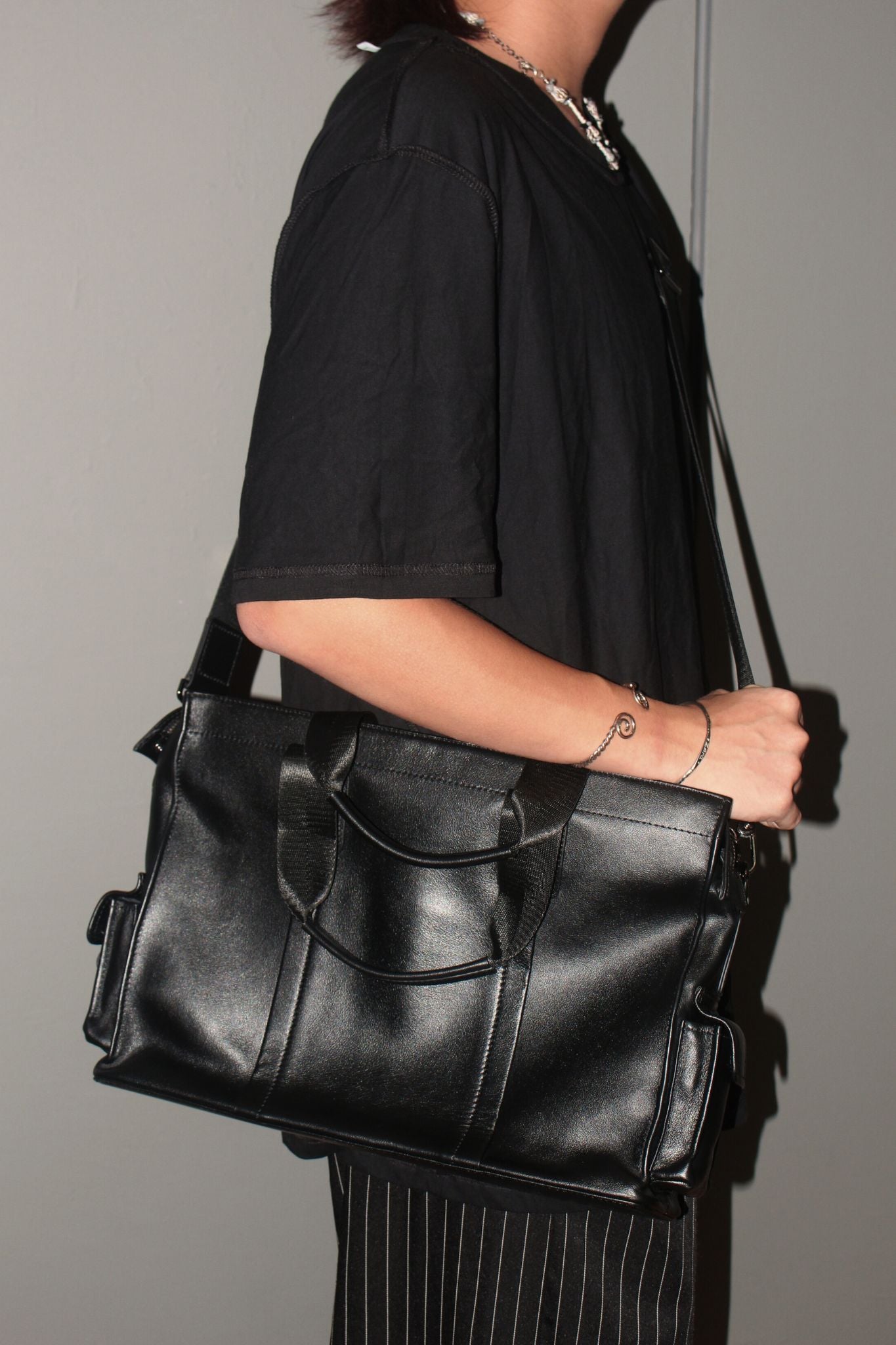 Unisex genuine cowhide leather Potter design briefcase laptop bag with sling