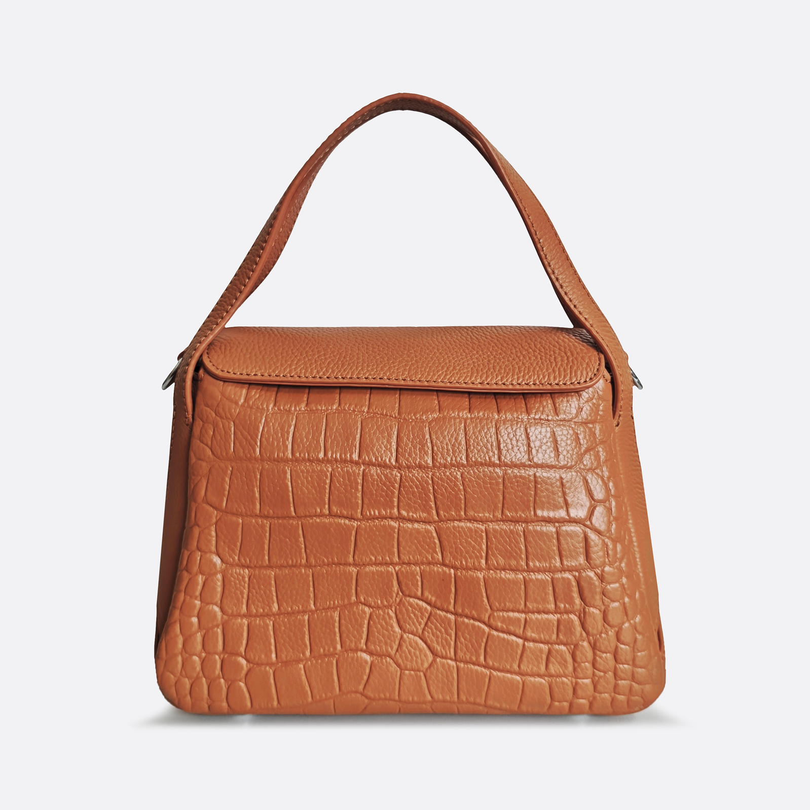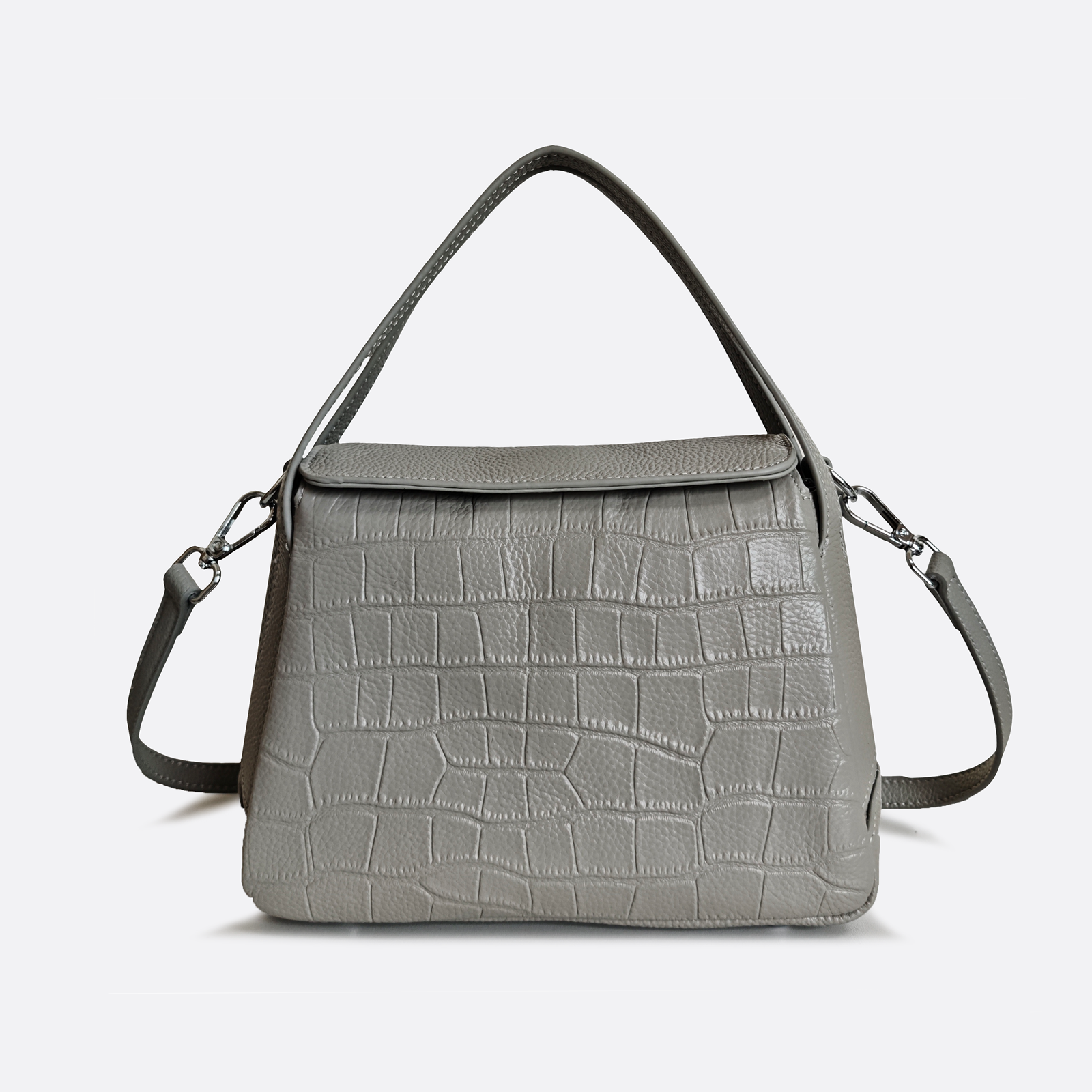 Women's genuine cowhide leather handbag Mori design with crocodile print