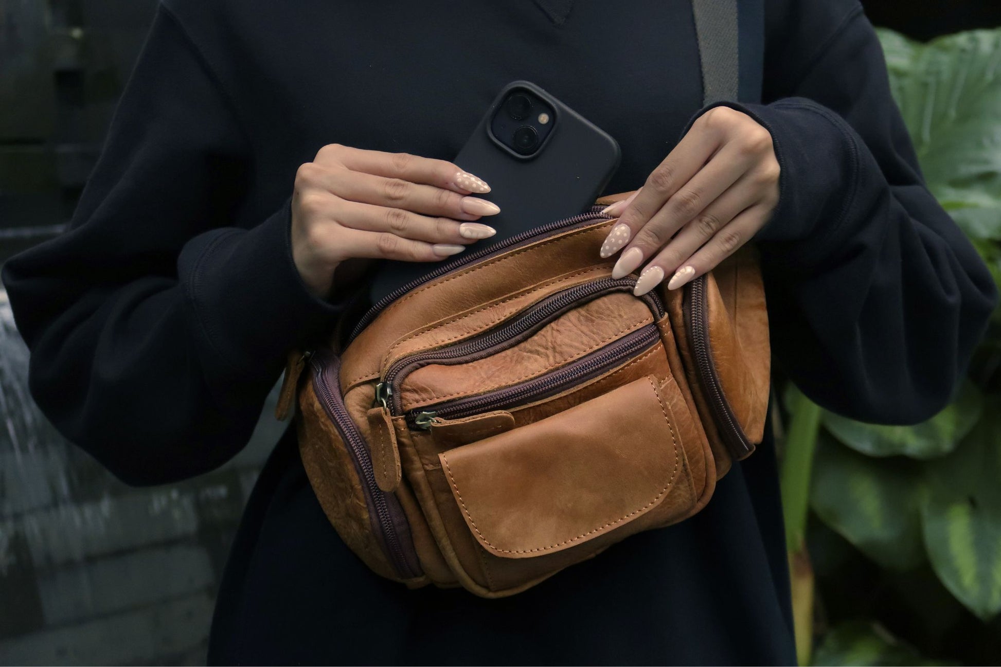 Unisex cowhide leather handbag Vesny pouch design waist bag