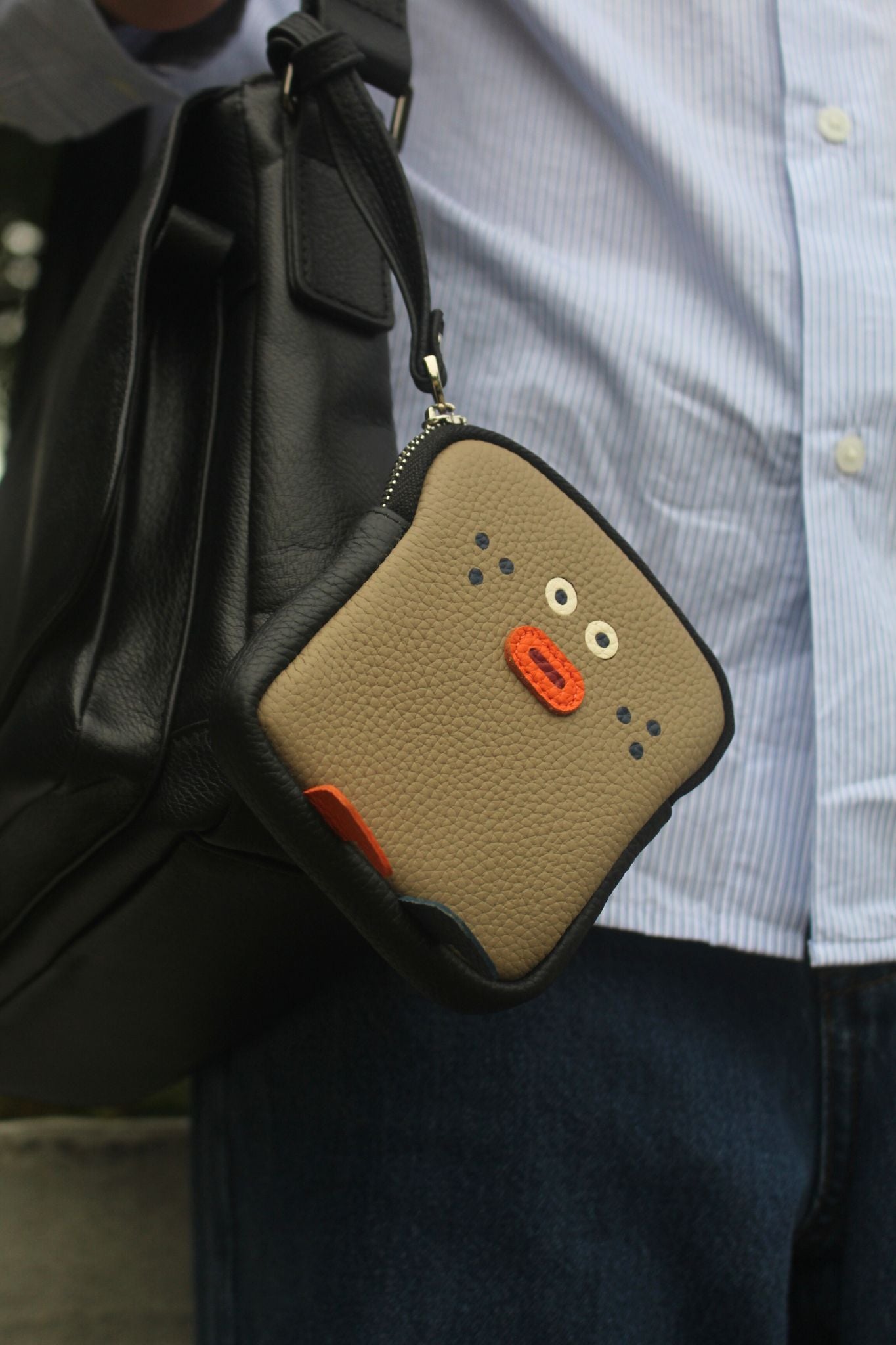 Women's and children's genuine cowhide leather toast design pouch bag charm