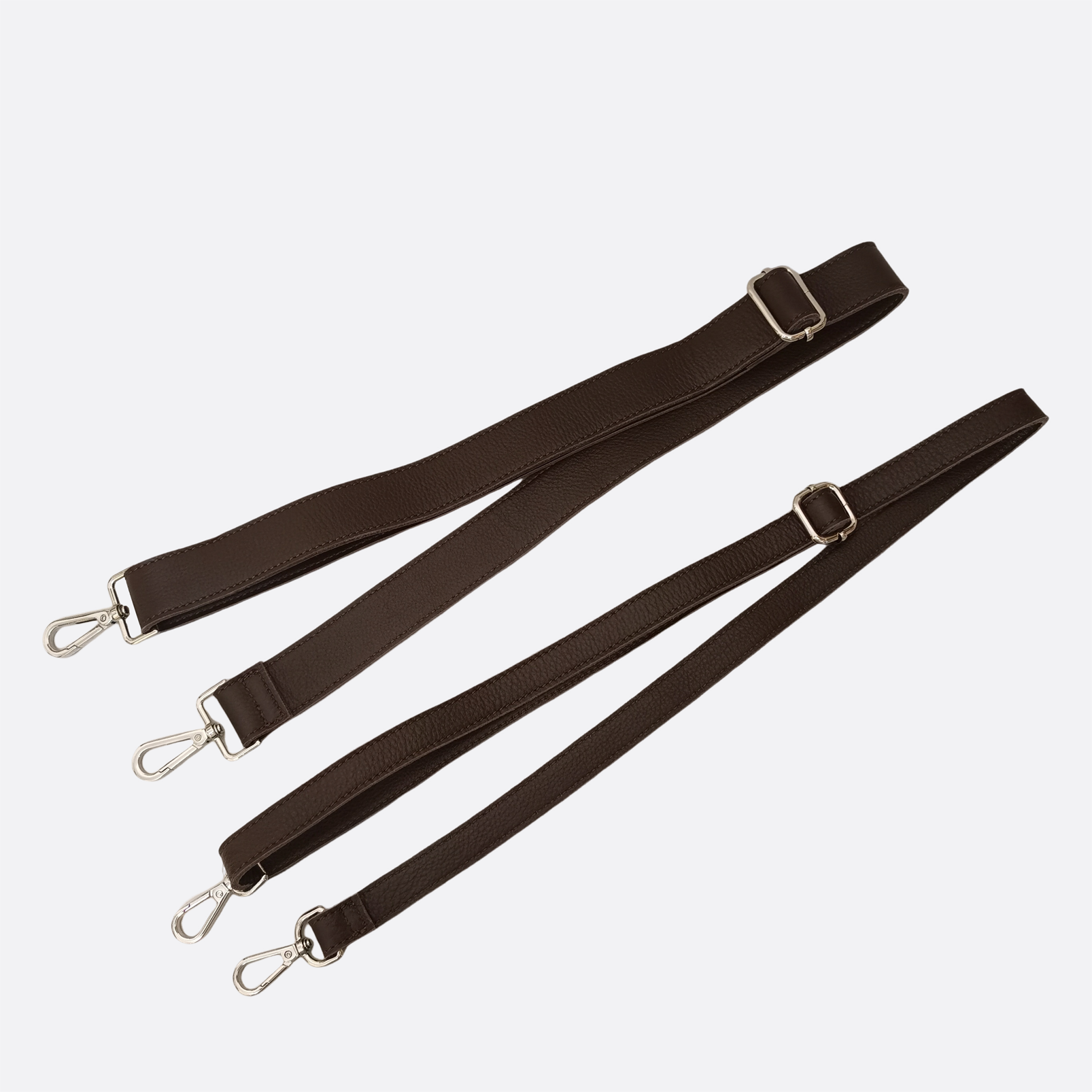 Comes with 1 adjustable short handle and 1 removable and adjustable crossbody strap.