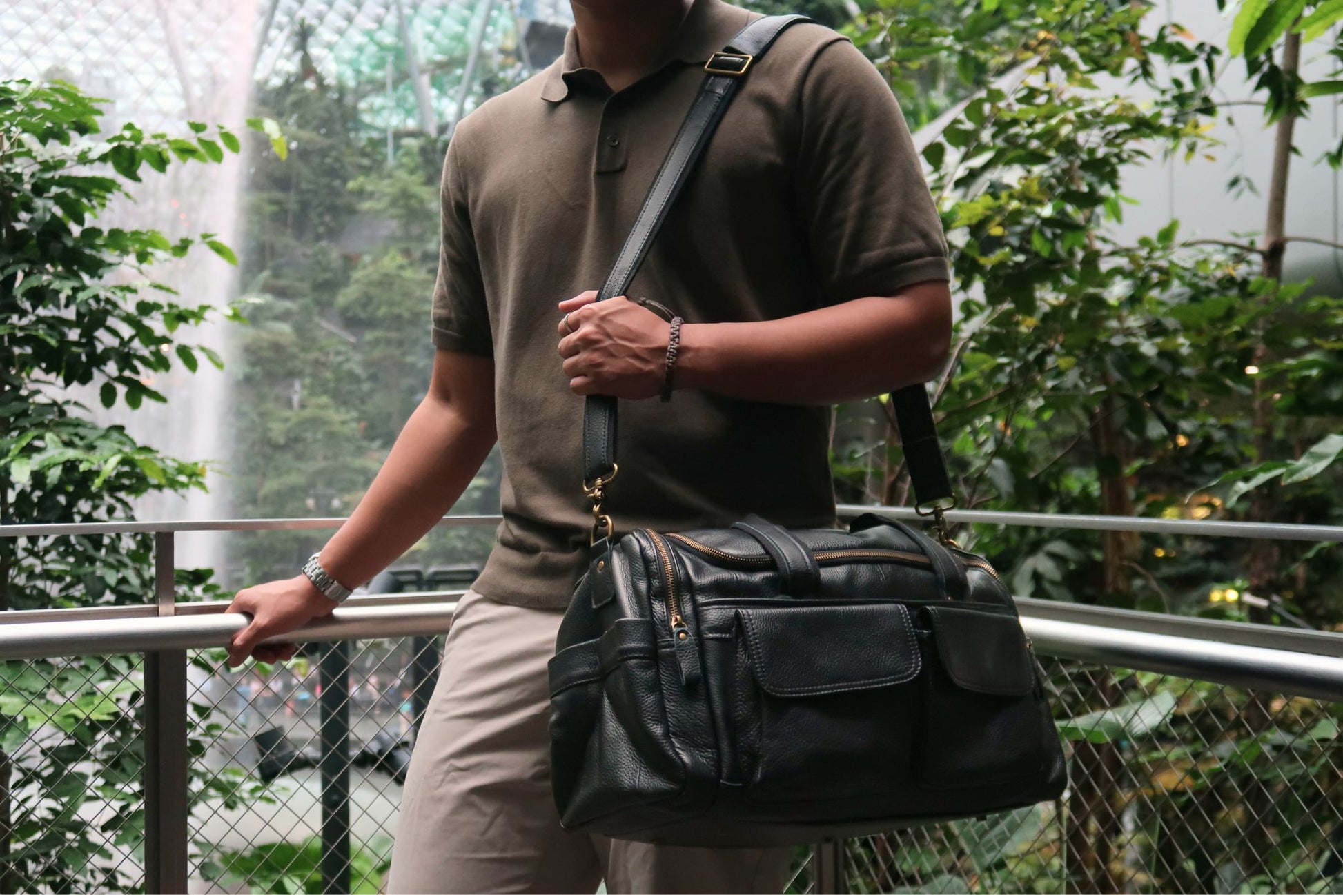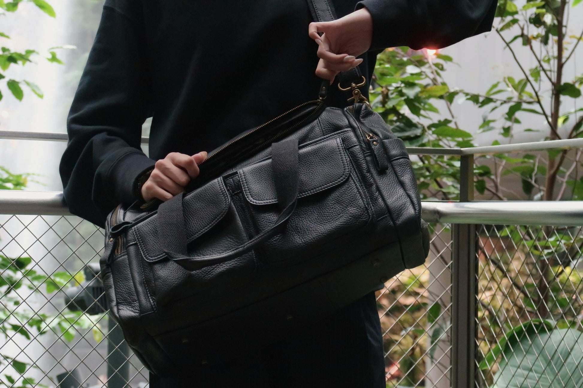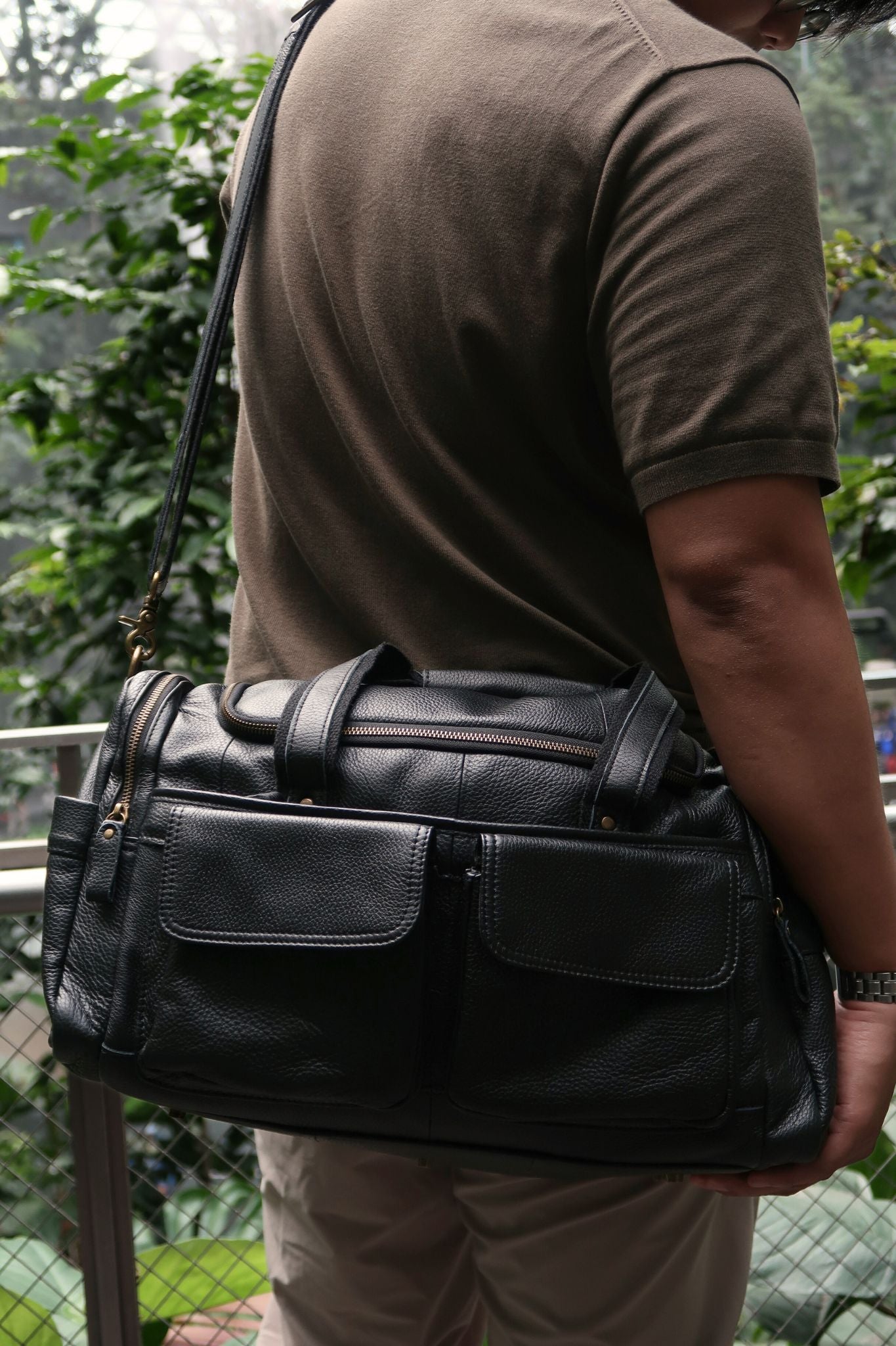 Tomorrow Closet (Singapore) Genuine cowhide leather Poches design unisex travel duffel bag