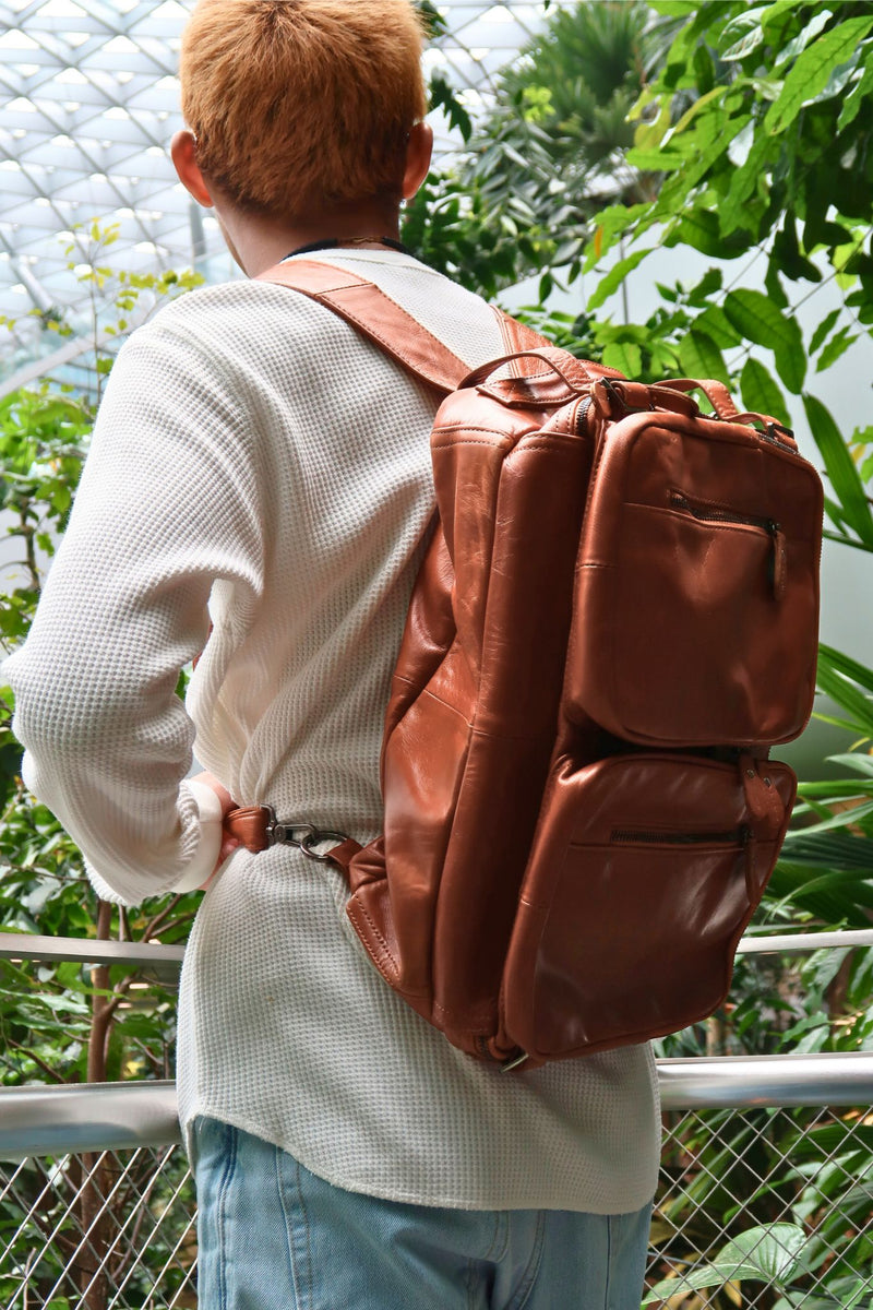 Unisex cowhide leather 3 in 1 backpack briefcase laptop bag with sling