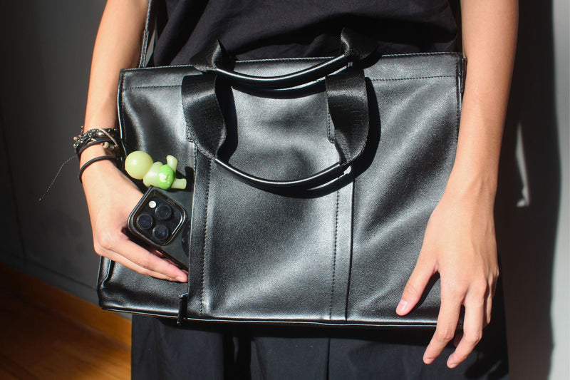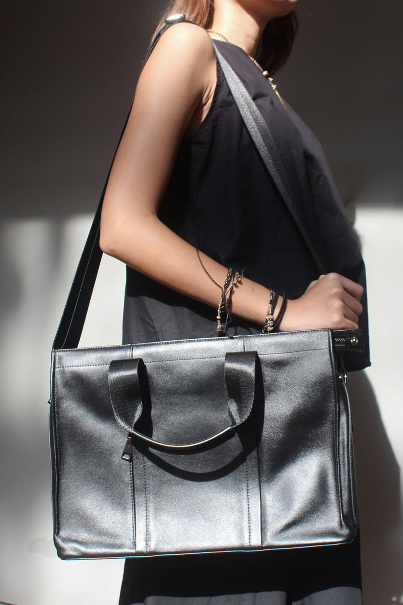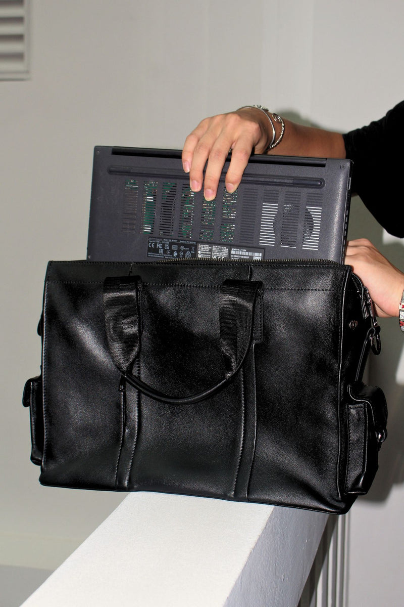 Fits laptop, A4, iPad, long wallet, umbrella, water bottle and more.