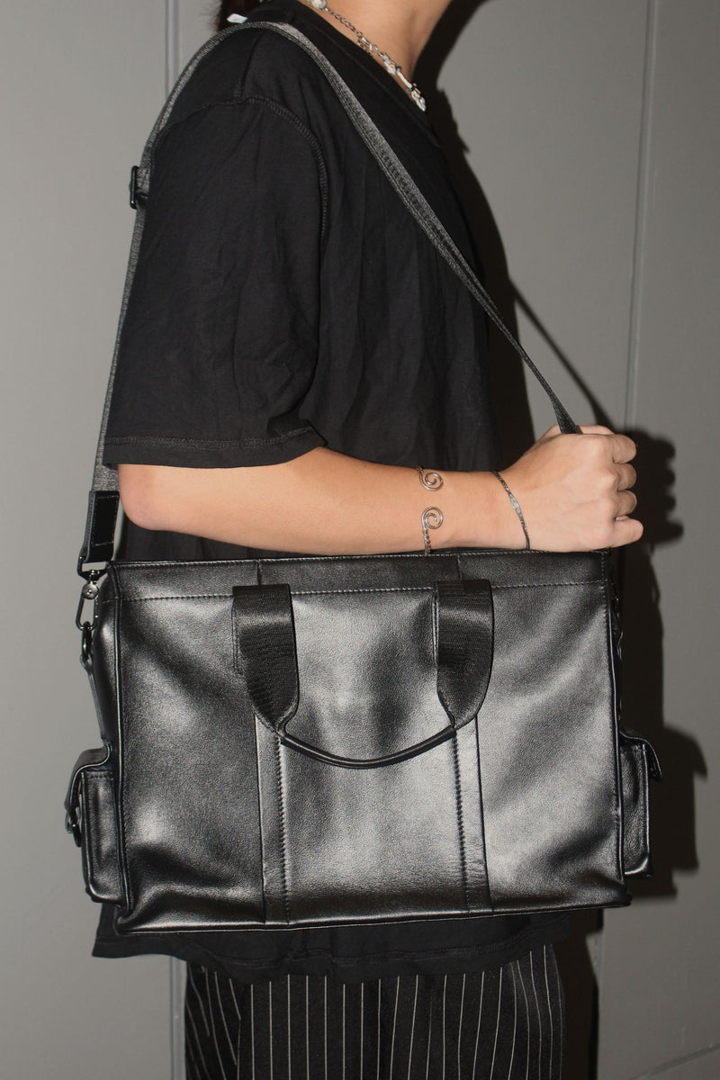 Unisex genuine cowhide leather Potter design briefcase laptop bag with sling