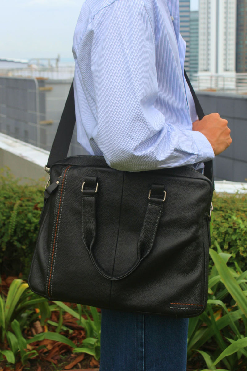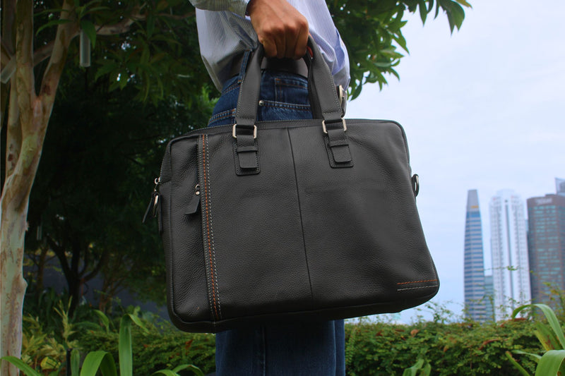 Unisex genuine cowhide leather top handle briefcase laptop bag Seam design