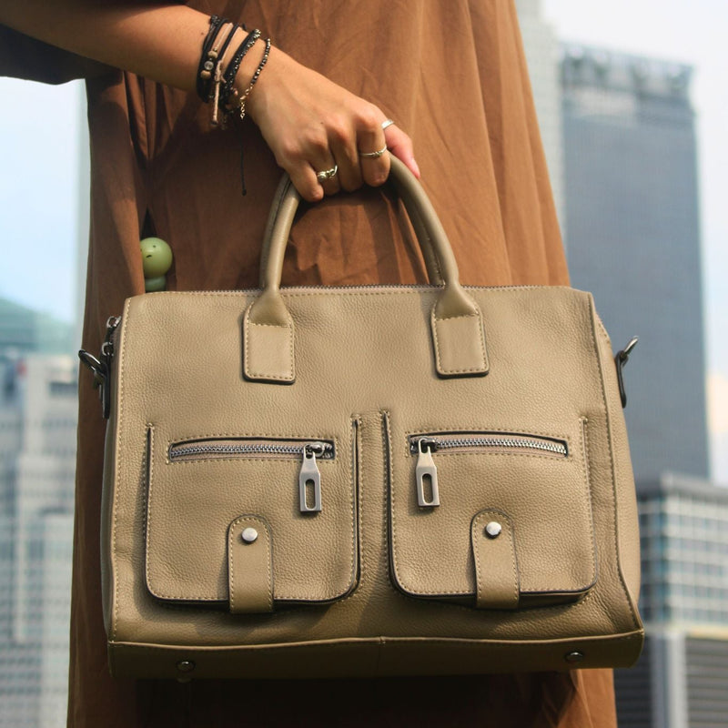 I have been searching around SG and also online for this type of bag and was glad that I found this at last. Hidden gems in SG. Good quality leather bag with this pricing, size, design, I am just loving it. I am only about 155cm tall, so this size fit me nicely.
