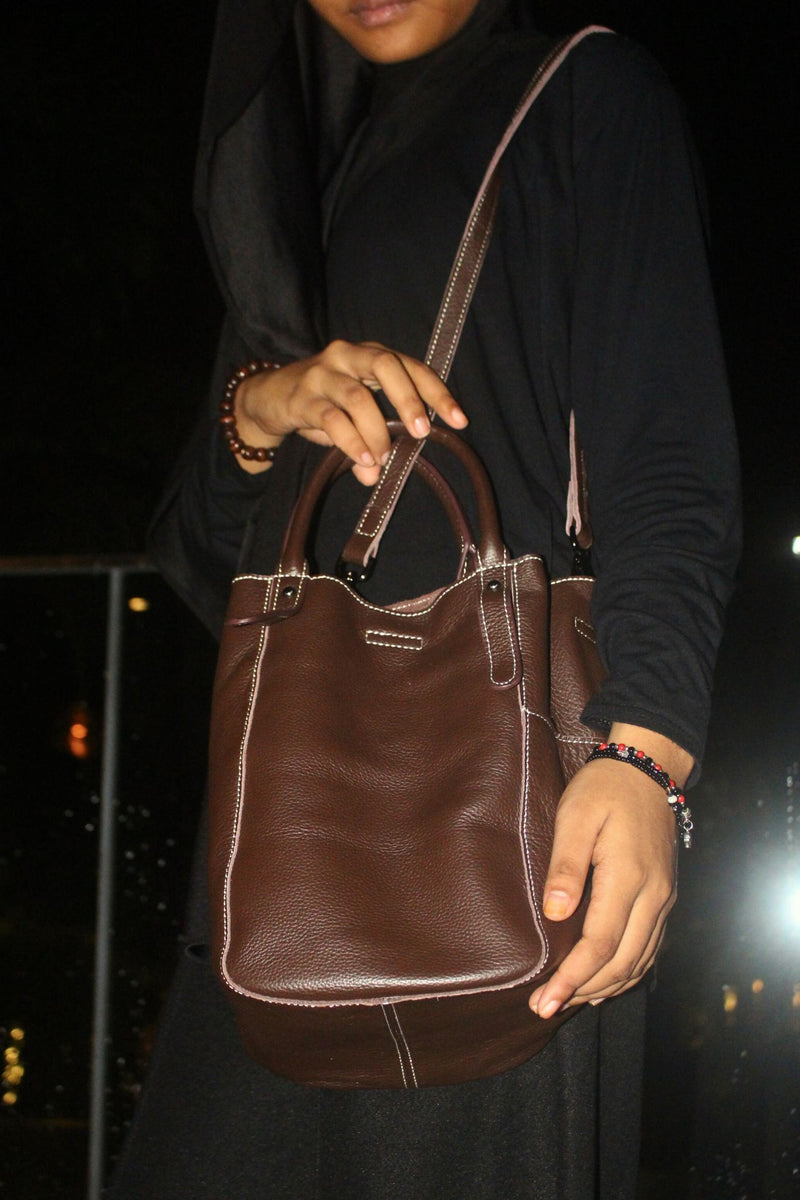 Women's genuine cowhide leather handbag Basket Lock design-dual carry version
