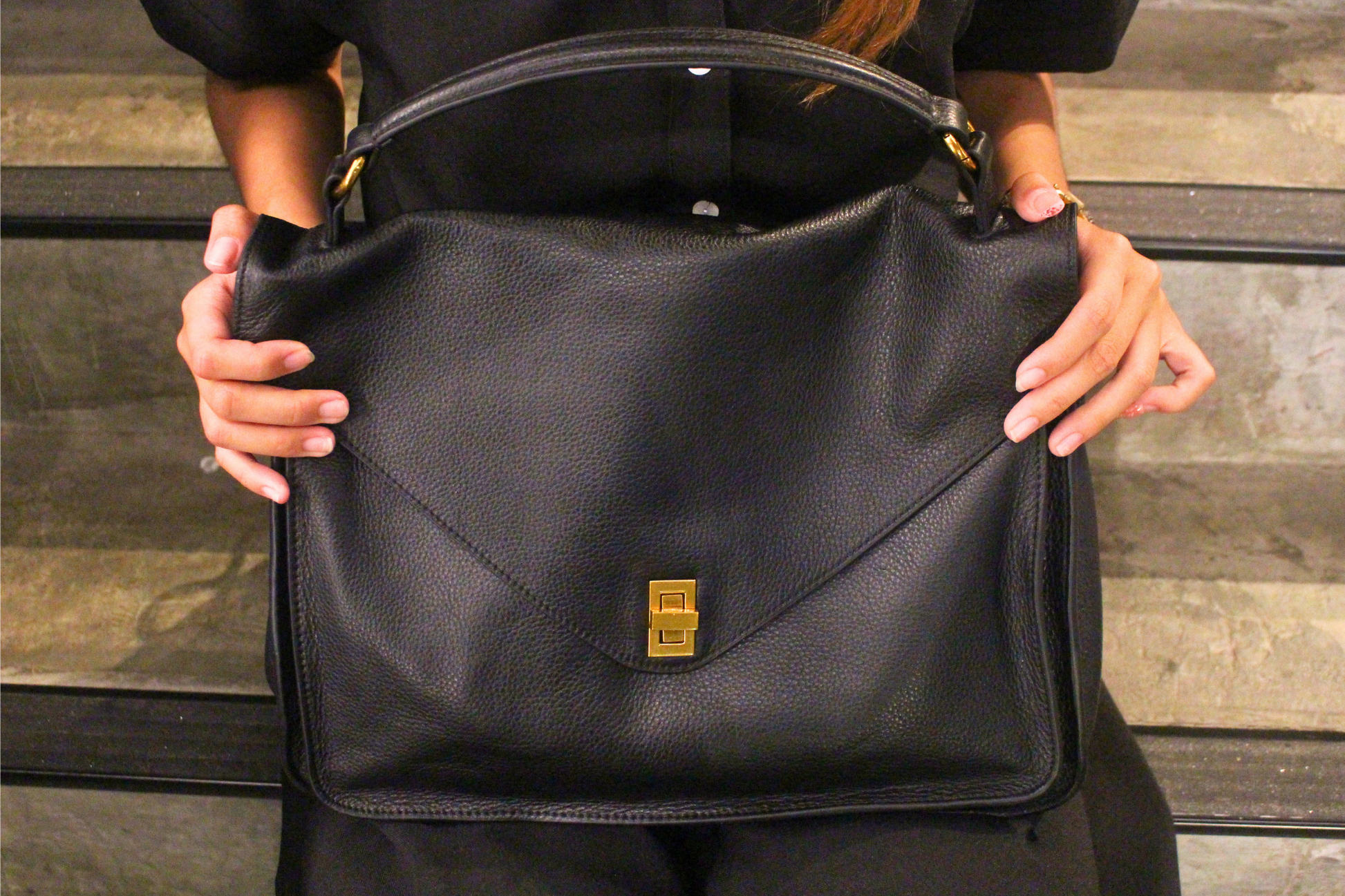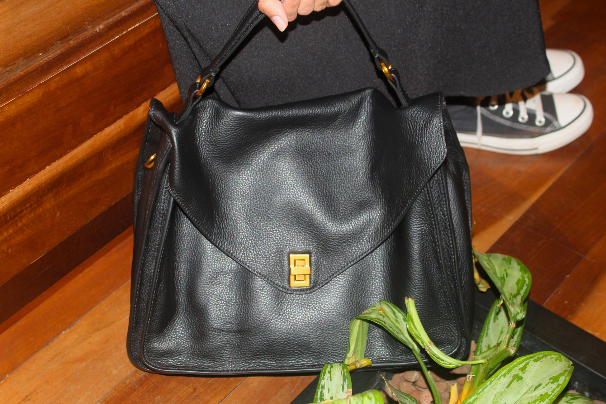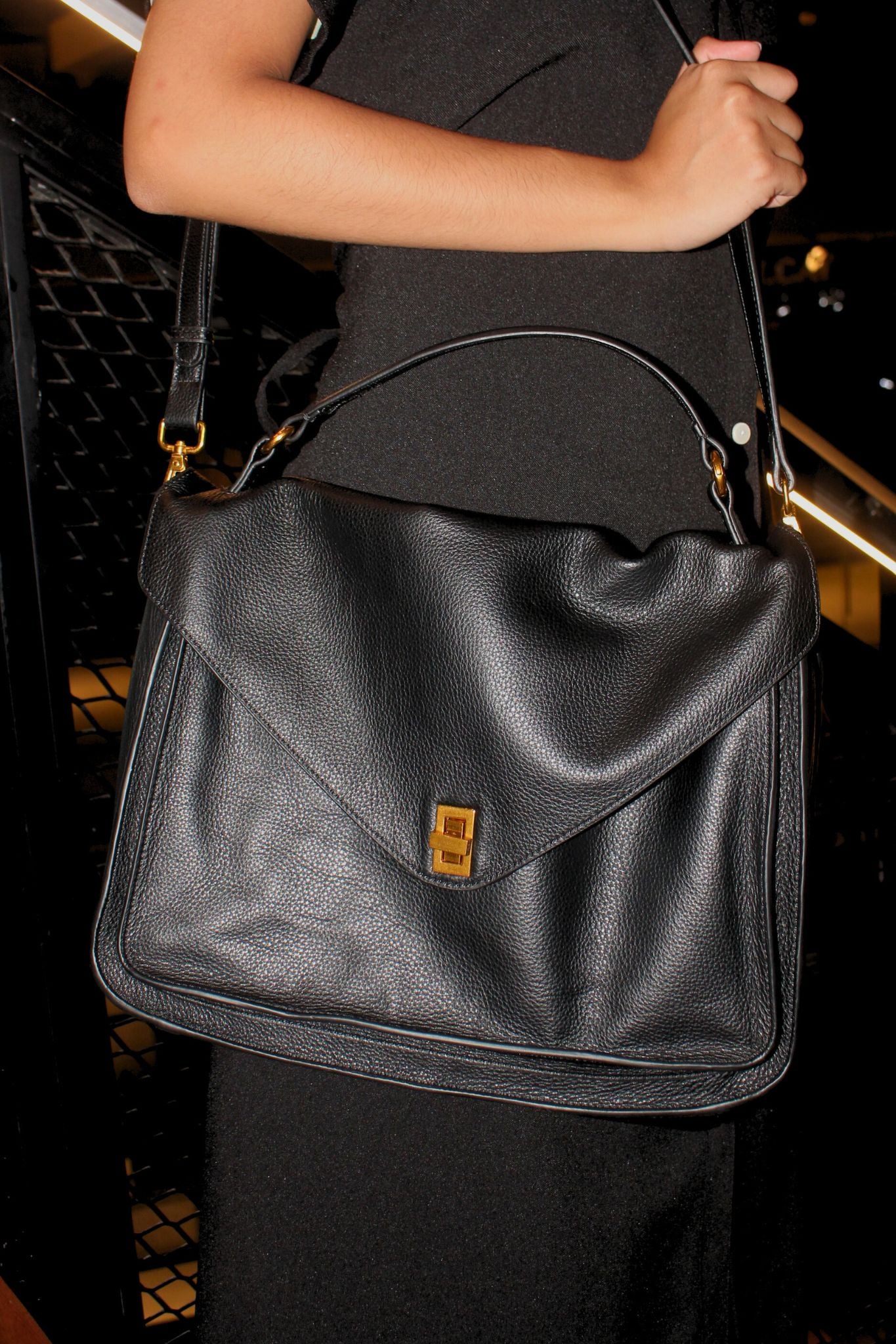 Fits tablet, water bottle, long wallet, umbrella, make up pouch, keys, passport etc.