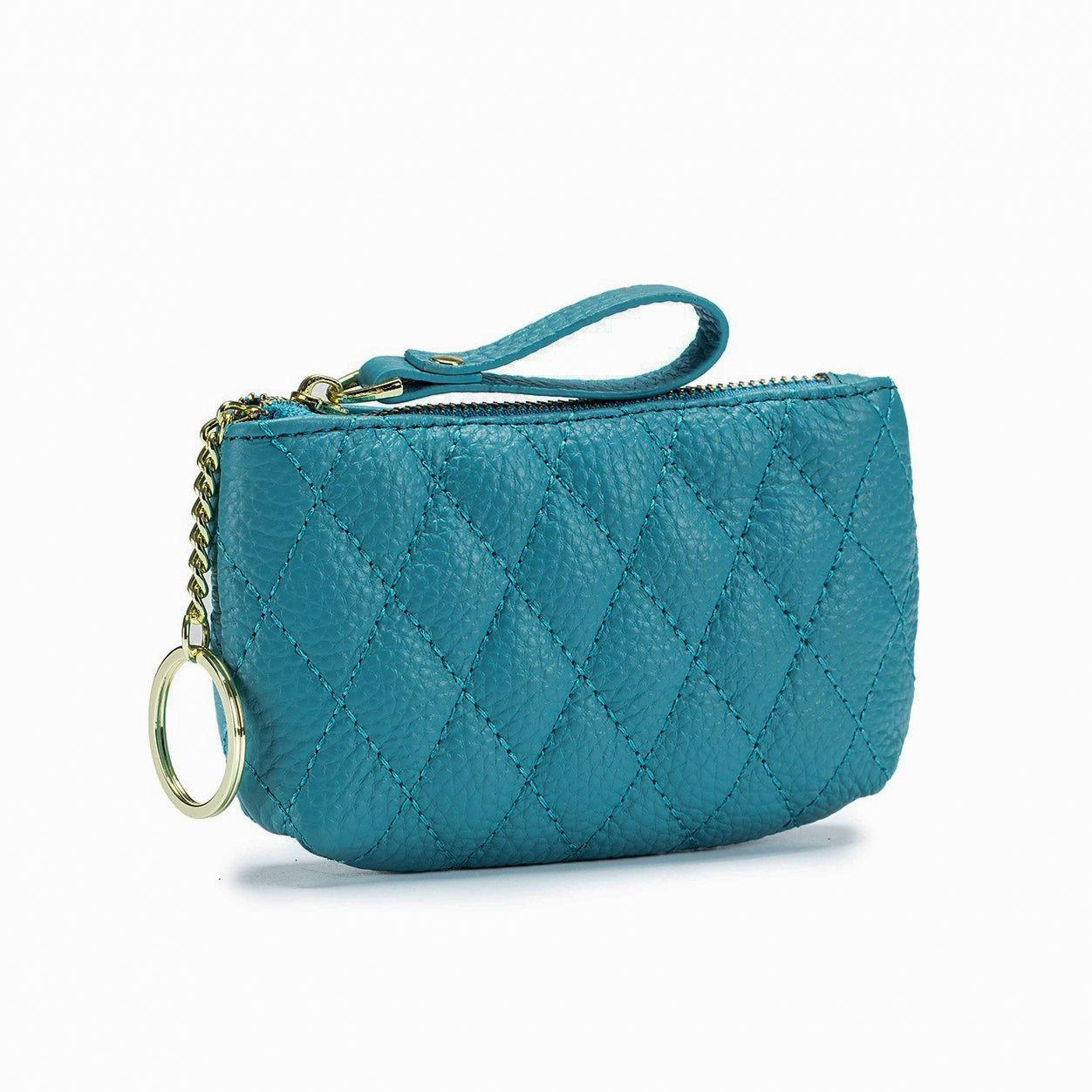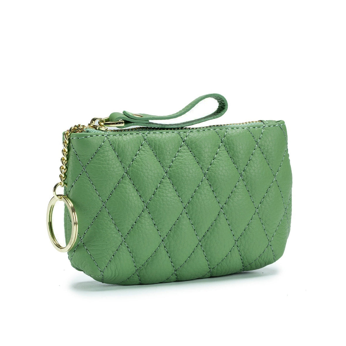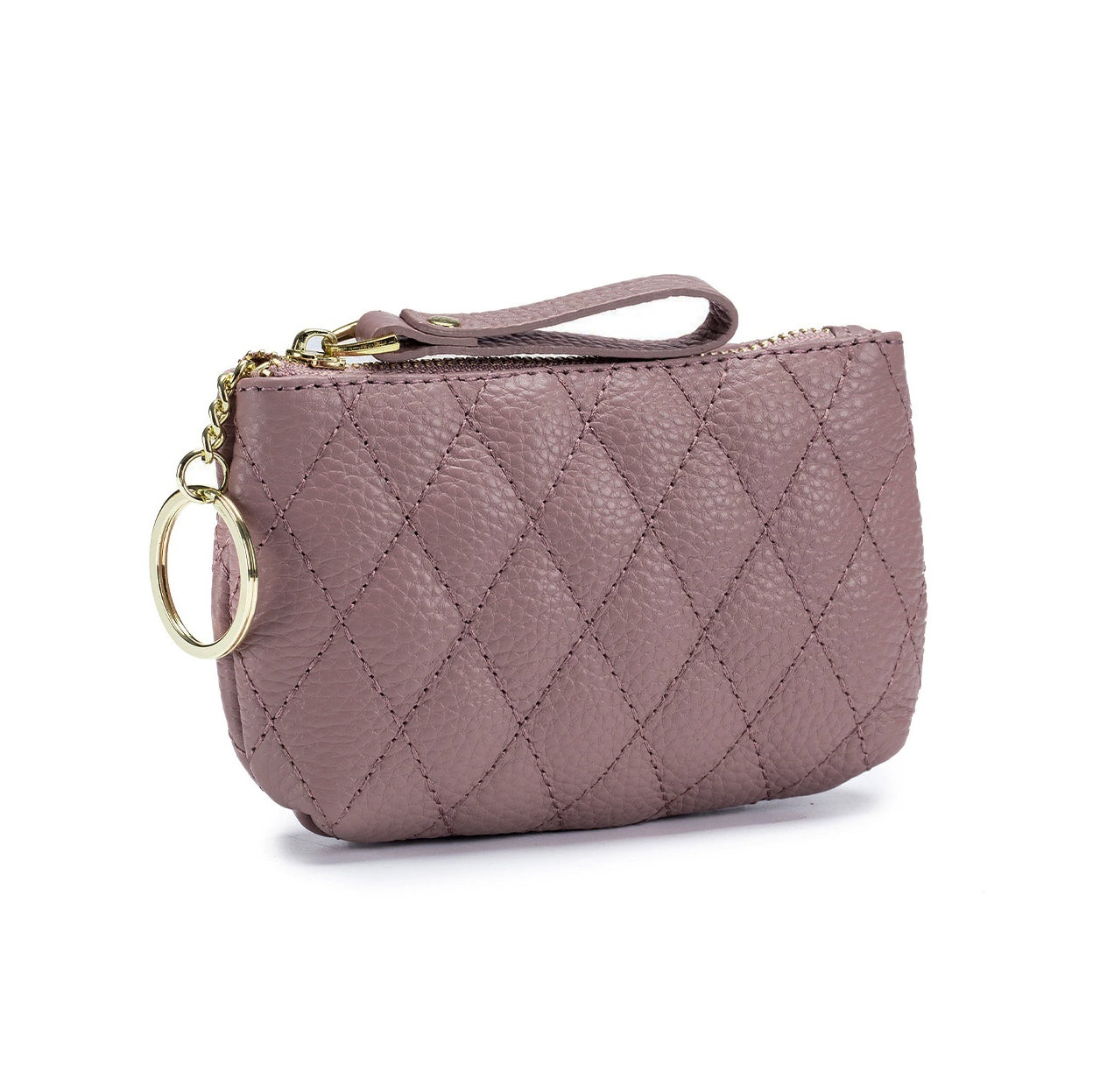 Women's quilted cowhide leather pouch Diamond design in pebble grain