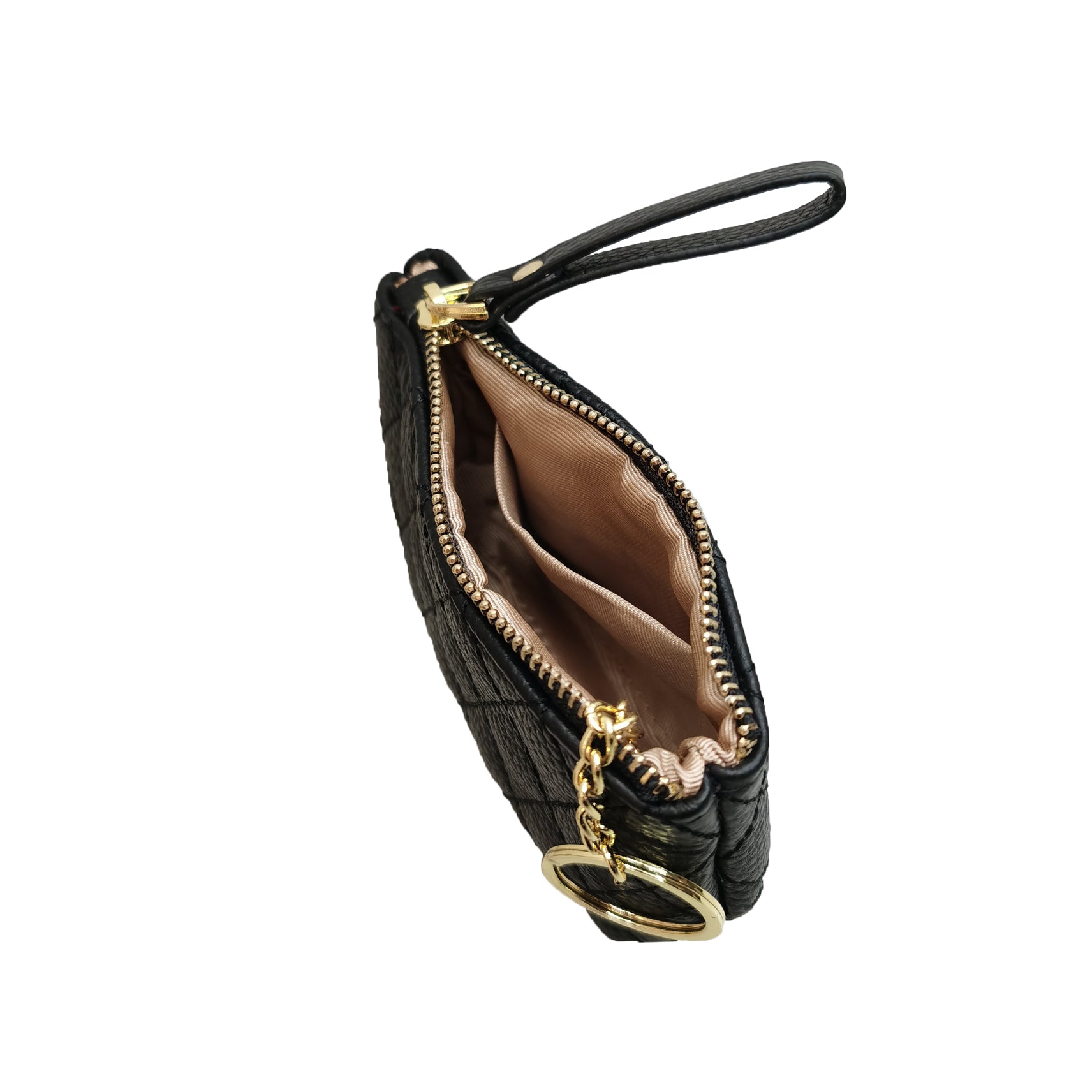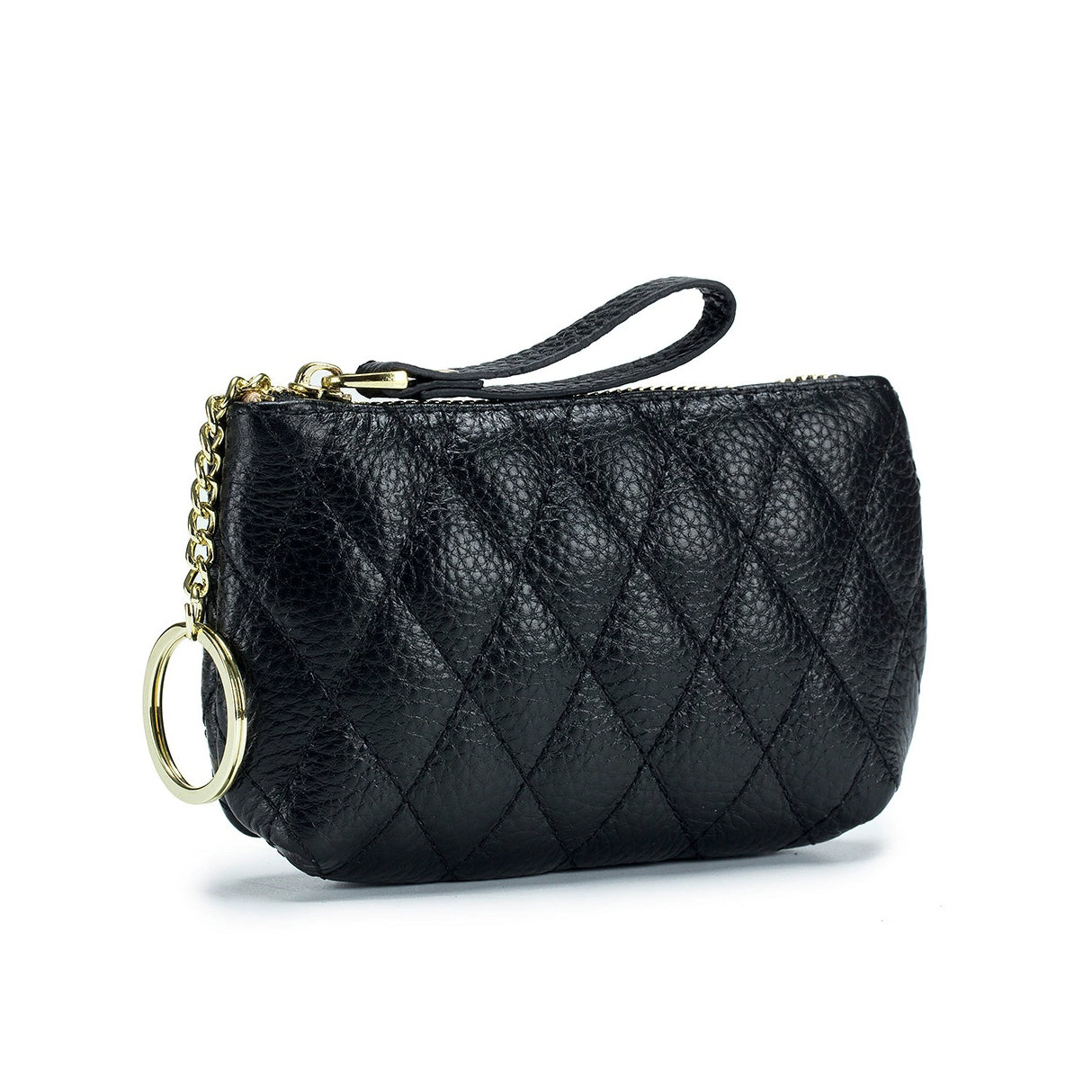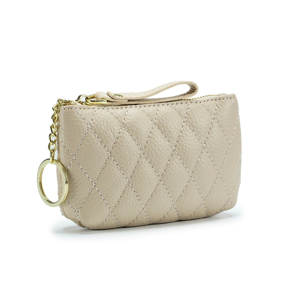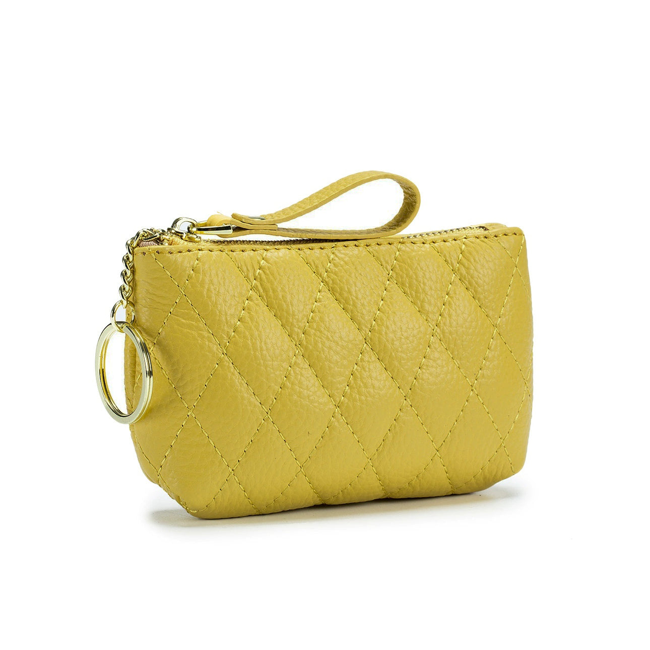 Women's quilted cowhide leather pouch Diamond design in pebble grain