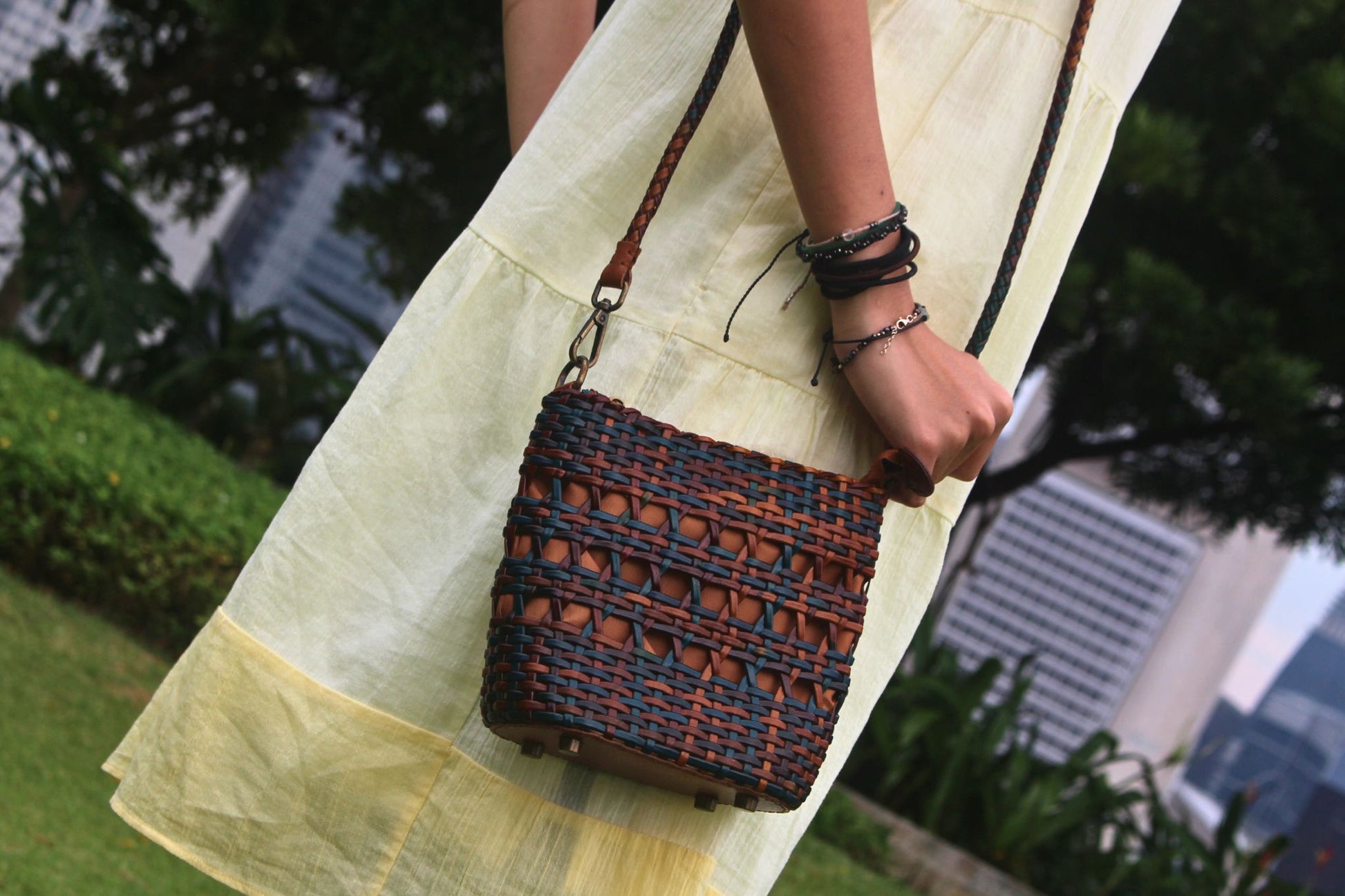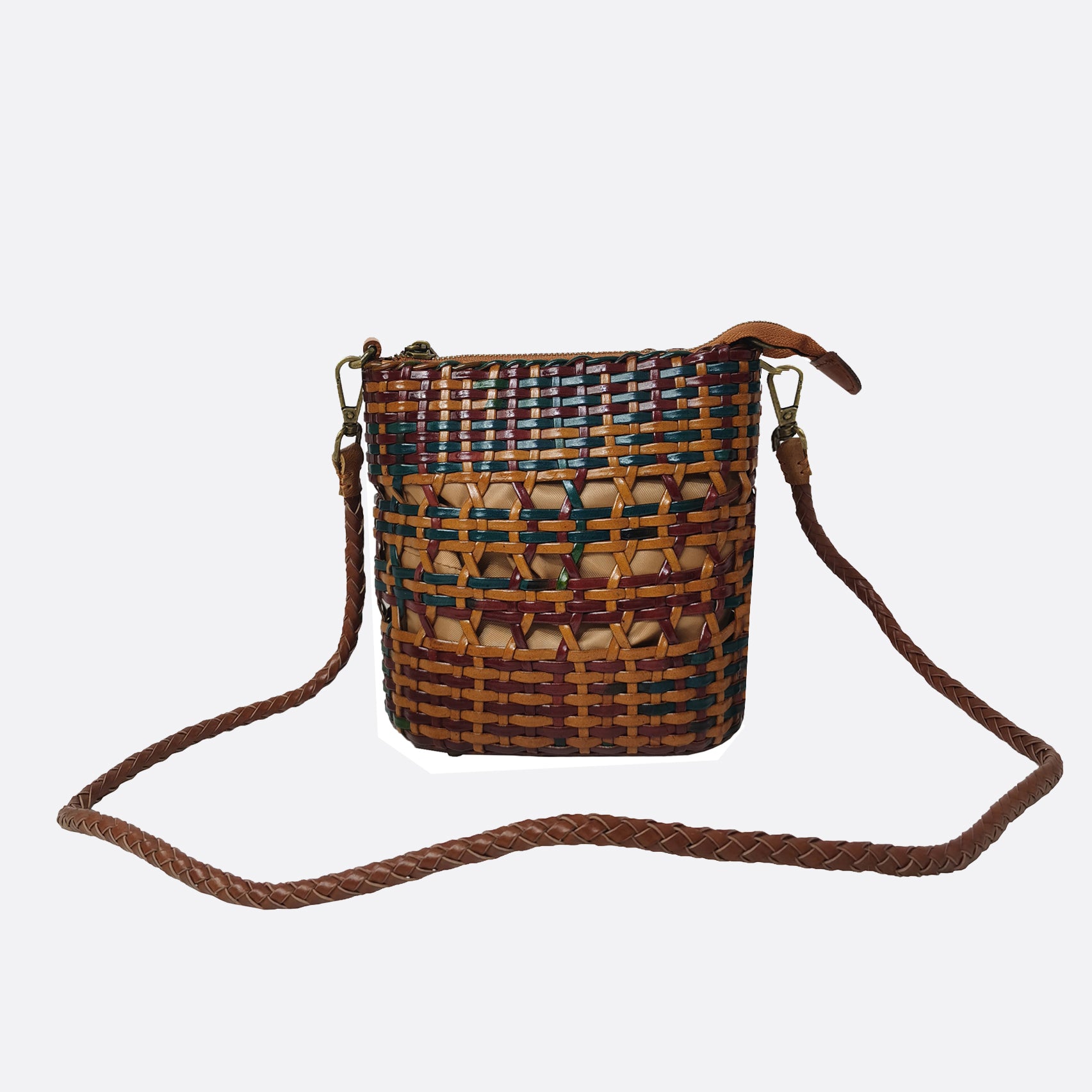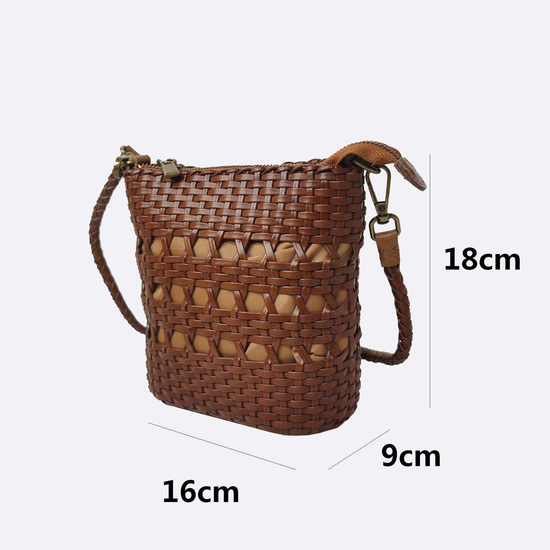 Made of genuine handwoven cowhide leather. Comes with a removable and adjustable strap.