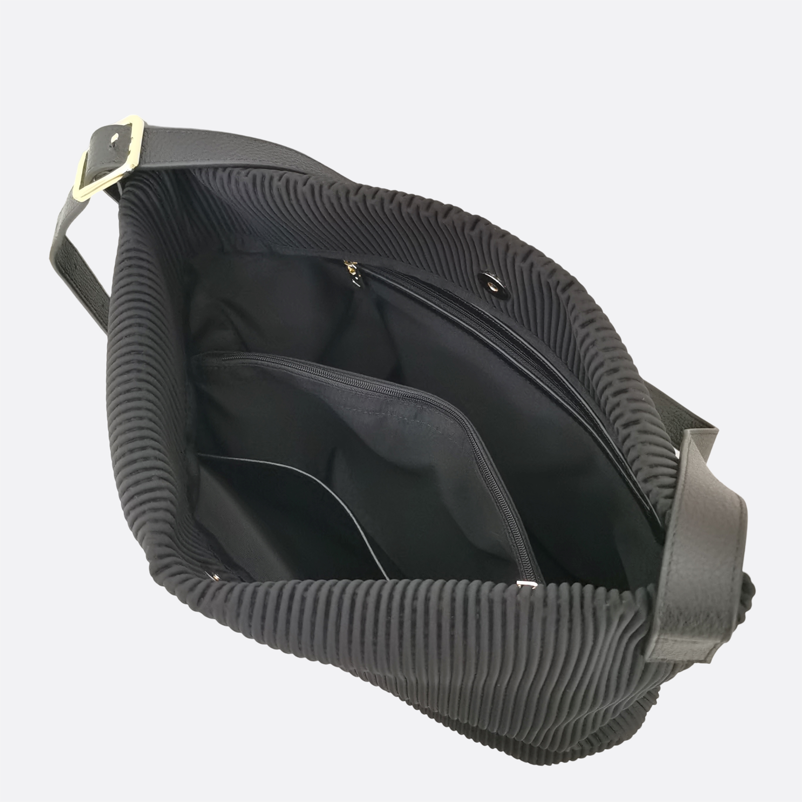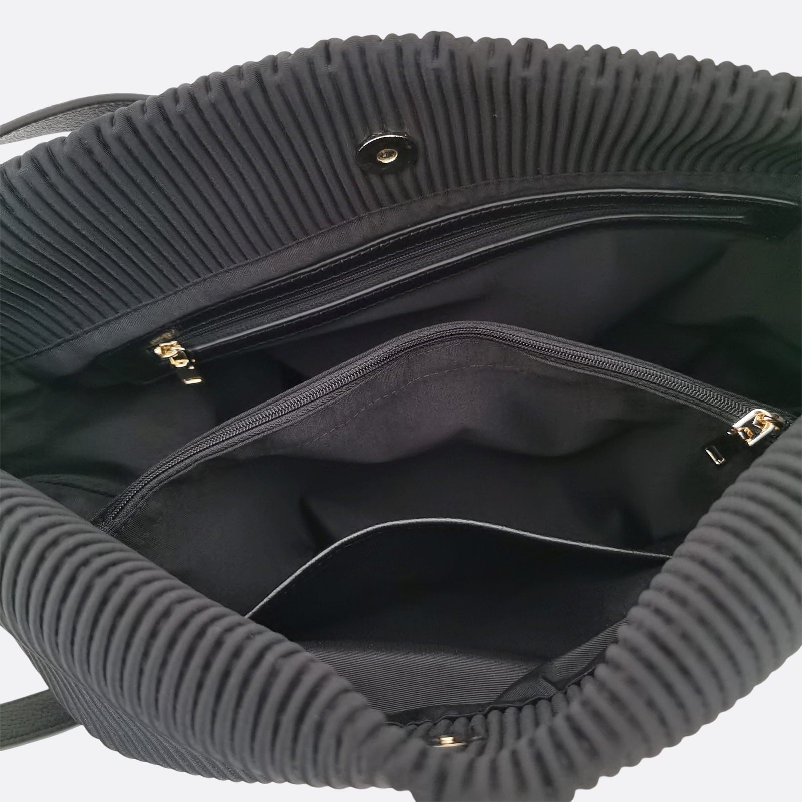 Women's nylon mix genuine cowhide leather handbag Cara design